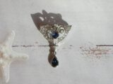 ブローチの針は、薄い生地、目のつまった生地に挿すと元に戻らない場合がありますのでご注意ください。ビーズはワイヤーや丸カンで繋がれているのでニットなどに引っかけないようにご注意ください。